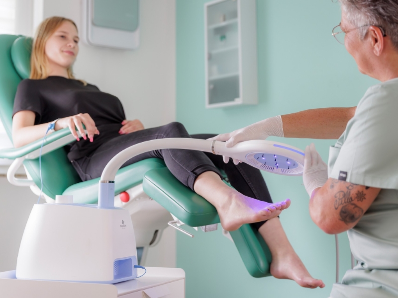 Physikalisch aktives Kaltplasma wirkt antimikrobiell in der kosmetischen und medizinischen Aknetherapie, verbessert das Erscheinungsbild reifer atrophischer Haut und ermöglicht den Betroffenen schmerzfreie Abhilfe bei Pilzinfektionen ohne systemische Belastung. Das kompakte hygienische Gerätemodul Dr.plajin GEHWOL TECH für den dualen Praxisalltag lässt sich kontaktlos und intuitiv bedienen, vielseitig kompatibel dank strahlungsfreier Oberflächenwirkung selbst bei vorgeschädigter Haut und Indikationen wie Nagelbettentzündungen, Rhagaden, Druckstellen, Diabetischem Fußsyndrom oder zur Warzenbehandlung. Um Fuß- und Nagelpilz langfristig erfolgreich zu kurieren, empfiehlt sich regelmäßig mehrmals wöchentlich eine fungizide 10-Minuten-Therapie in der podologischen Fußpflege. Ab dem zweiten Monat ist bis zum vollständigen Abklingen der Haut- und Nagelpilzerkrankung eine wöchentliche Folgebehandlung sinnvoll.